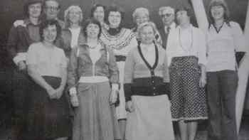 Lehrerkollegium (v.l.: Hedwig Finke, Bärbel Luczak, Rektor Bernhard Hartmann, Helga Tieben, Konrektorin Brigitte Wewer, Maria Waldmann, Irmgard Lücke, Josefine Lensing, Adelheid Schmidt, Leonard Bonne´, Dorothee Weitkamp und Bärbel Lenger):